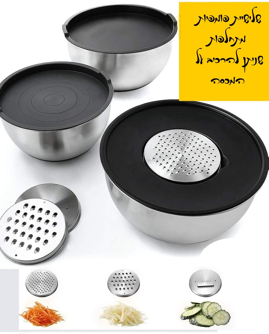 הקערות מושלמות למדידה, ערבוב, מזיגה, הקצפת ביצים, סלטים, הכנת ארוחות, הגשה, כבישה ואחסון מזון והכל בכלי מטבח אחד!